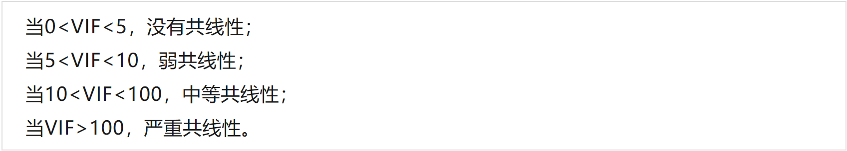 这里简单解释一下方差膨胀因子:方差膨胀因子是检验自变量间共线性问题的常用方法,如果自变量间共线性过强,会导致分析结果不稳定,还可能出现回归系数的符号与实际情况完全相反的情况。