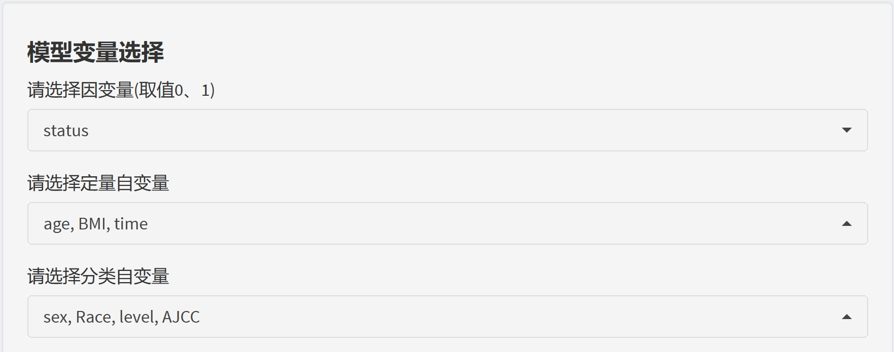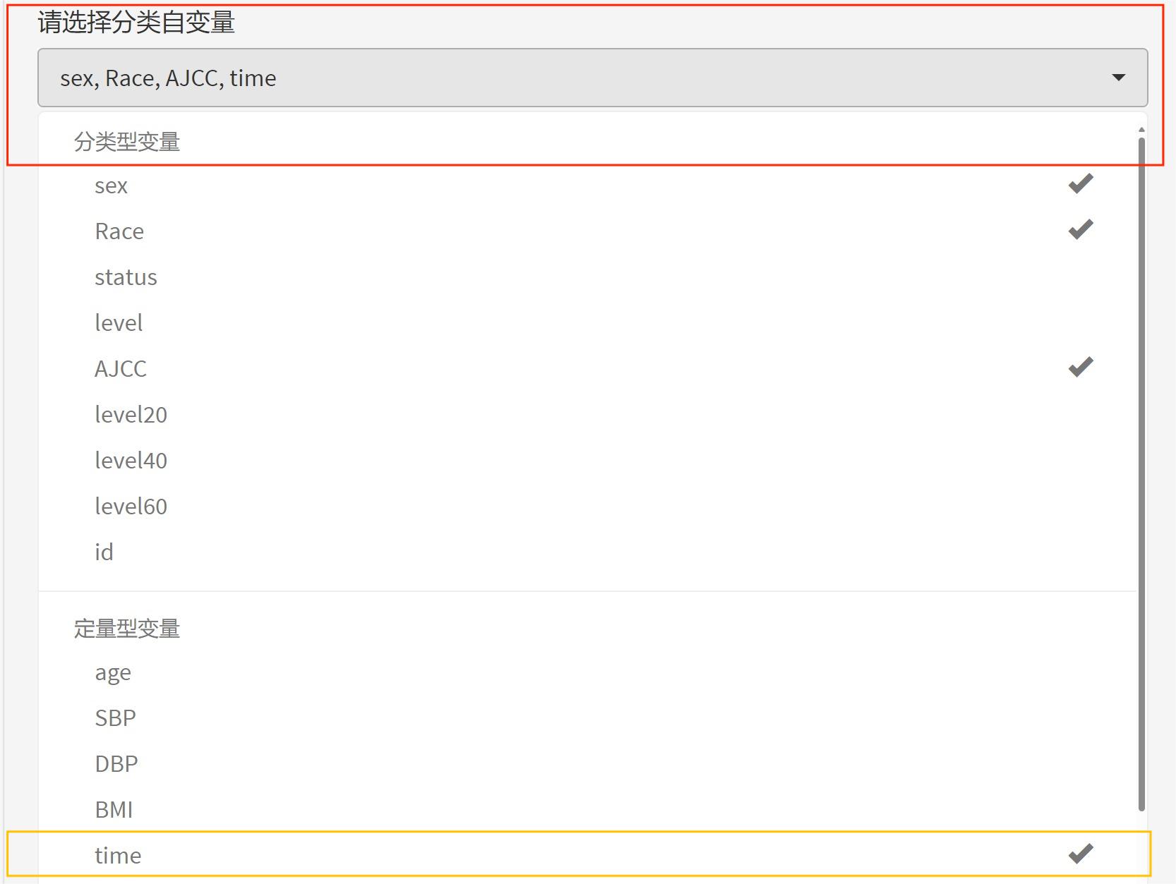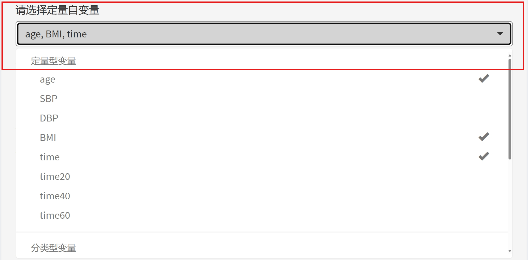 平台会将分类数大于5的变量自动归为定量自变量,并在选取定量自变量时,优先显示在上方,便于选取。