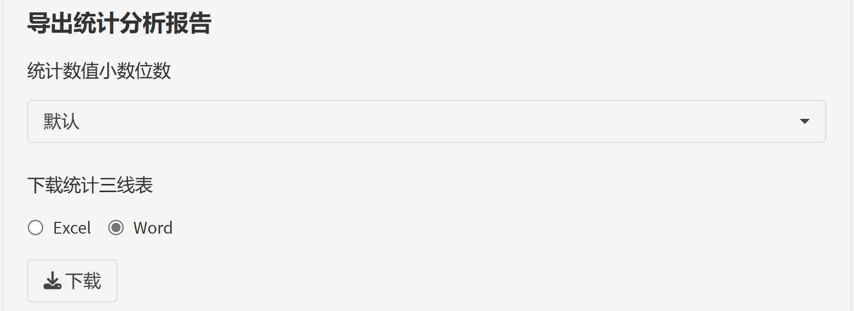 指定小数位数后,P值与统计量的小数位数将会统一。调整完成后,下载最终的三线表结果,平台支持下载excel或word!